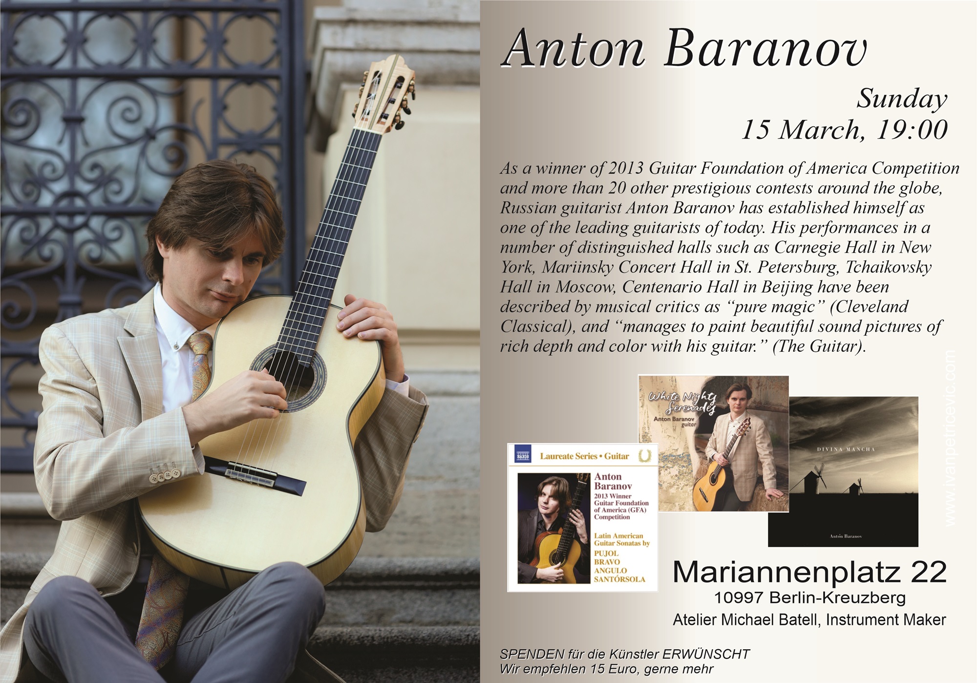 Video: Ivan Petricevic performing "Prelude in E-major" by Manuel MarĂa Ponce Video: Valeria Galimova performing Koyunbaba by Carlo Domeniconi